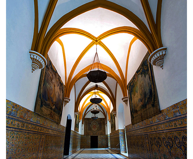 Mädchenhof der Mudéjar-Palastanlage Pedros I. her tritt man in den