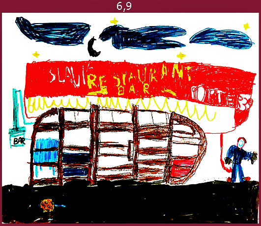 (Reklame-)Schilder an einer französischen Bistro-Bar.